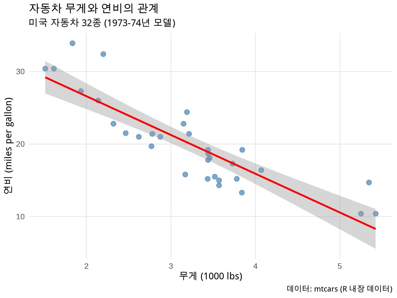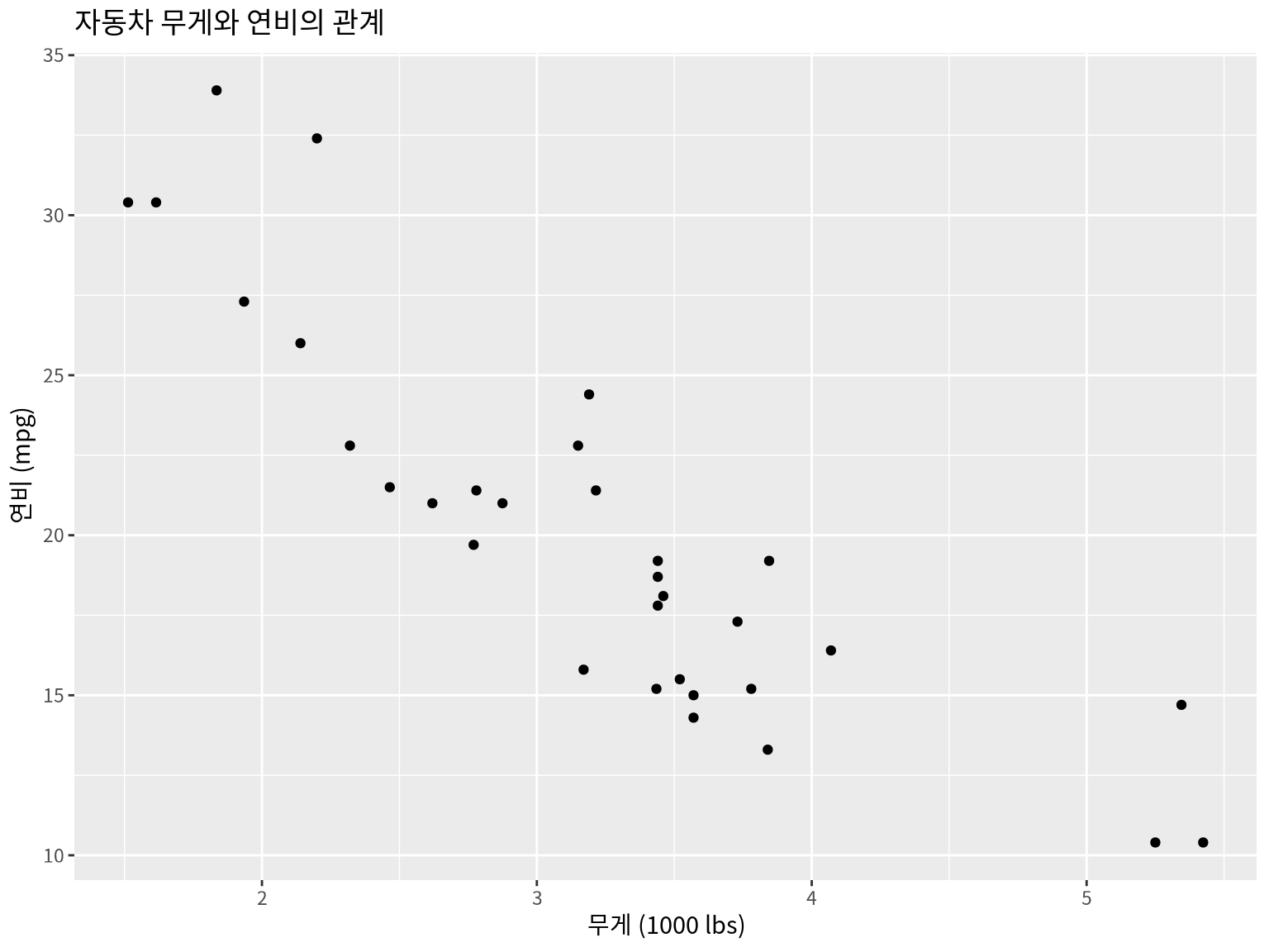 labs(title = "자동차 무게와 연비") +