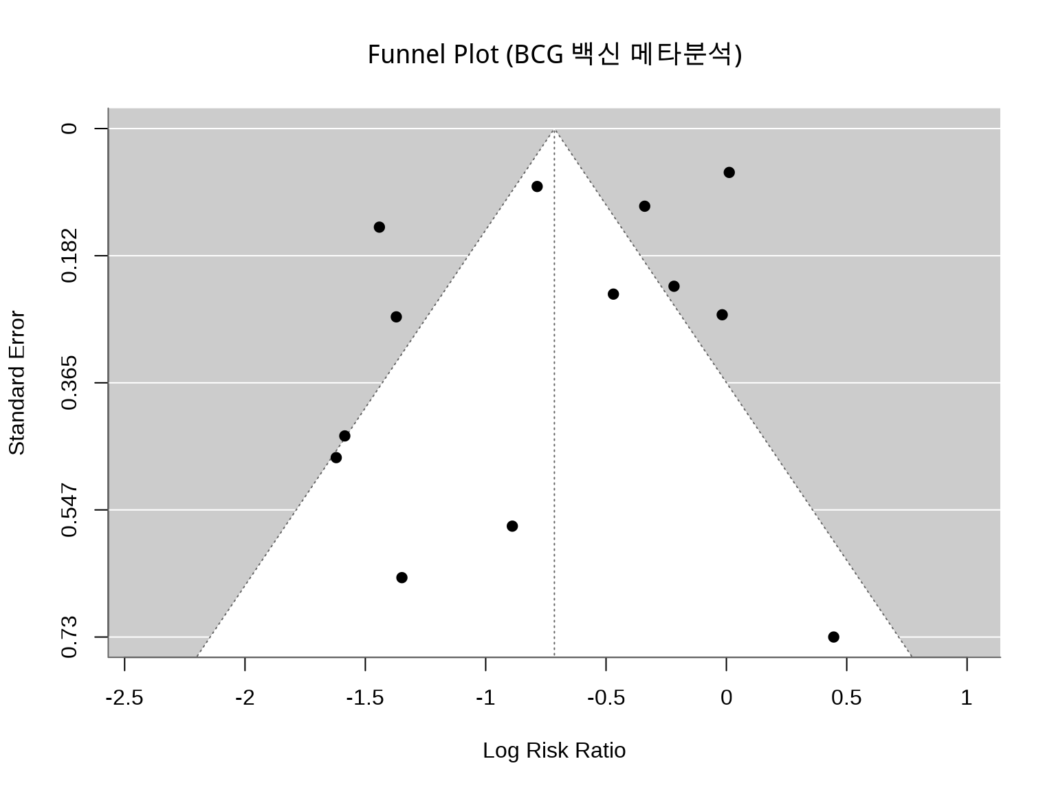 data (dat.bcg) # BCG 백신 효과 메타분석 (13개 연구)