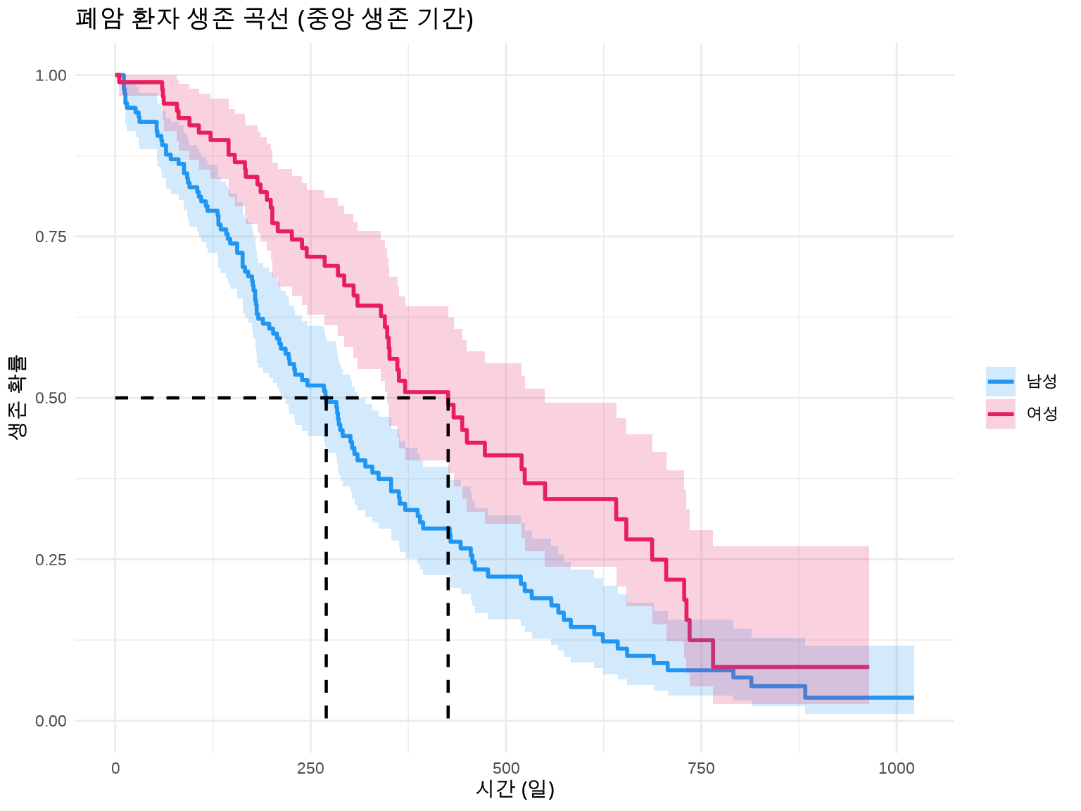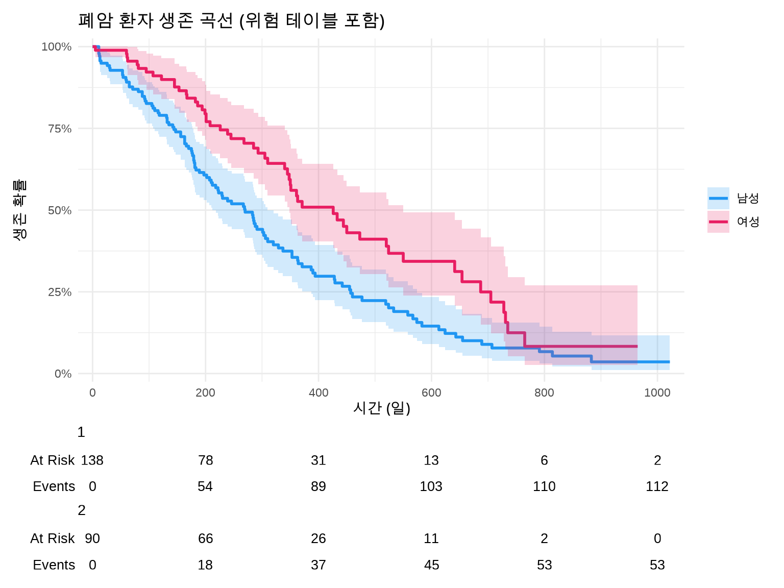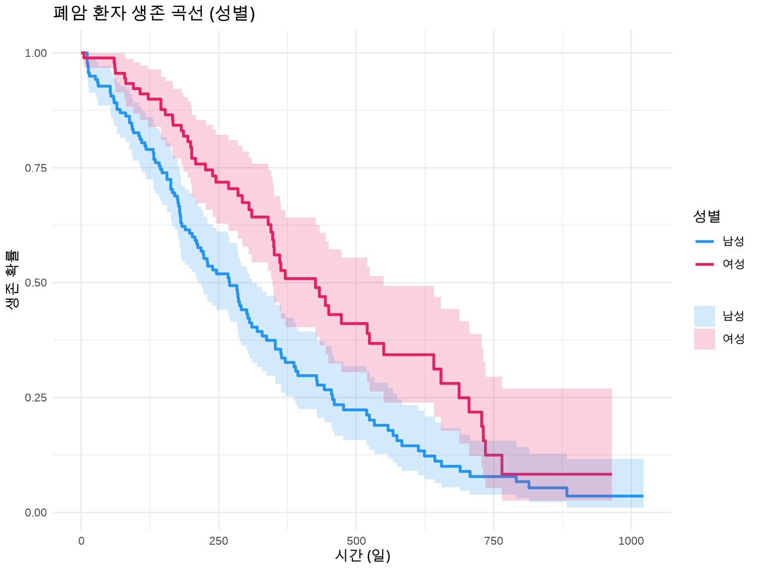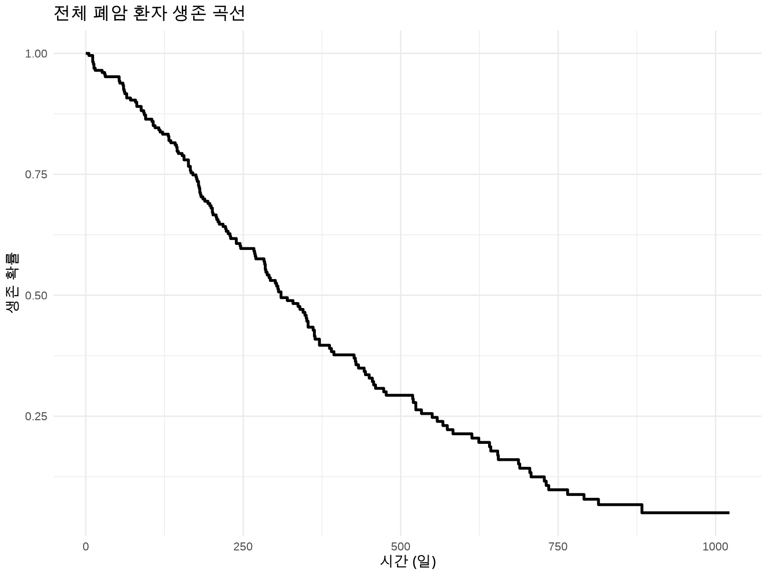#| fig-cap: "Kaplan-Meier 생존 곡선 (폐암 데이터)"